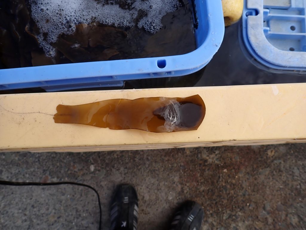 逗子小坪近海2箇所に子嚢斑の出たカジメをスポアバッグに入れ設置しました。胞子が拡散することを願っています。